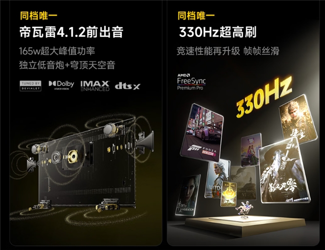 對游戲玩家來說,這款電視更是電競級神器,它實現全鏈路330Hz超高刷,搭配4路真金滿血HDMI2.1接口,支持48Gbps滿血帶寬,同時兼容VRR、ALLM等游戲特性,搭配freesync專屬模式,延遲低至4ms,畫面不撕裂、不卡頓,連接游戲主機時音畫同步無損傳輸。專屬游戲妙控臺還能自適應三大主機,自動識別游戲類型并優化畫質,提前適配未來多代游戲主機,十年不過時,玩競技游戲能更早捕捉敵人細節,玩3A大作能享受絲滑畫質,真正做到游戲體驗拉滿。
